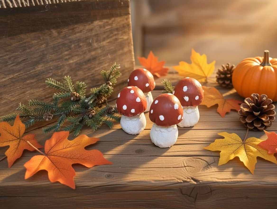 Liten flugsvampCharmig dekorationsdetalj som sprider färg och höstkänsla i hemmet eller trädgården. Perfekt på bordet  i blomsterarrangemang eller på altan