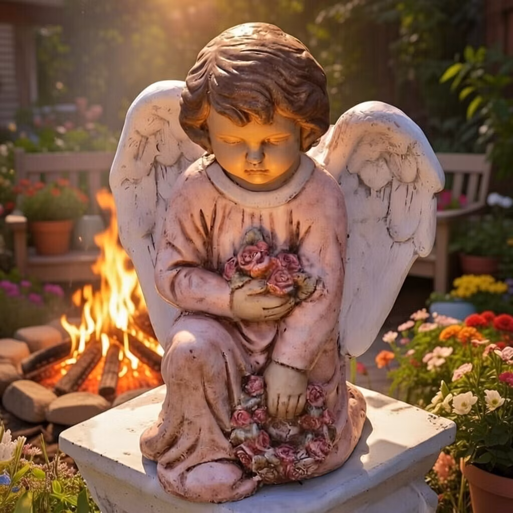 Ängel på knä i betong – dekorativ prydnad