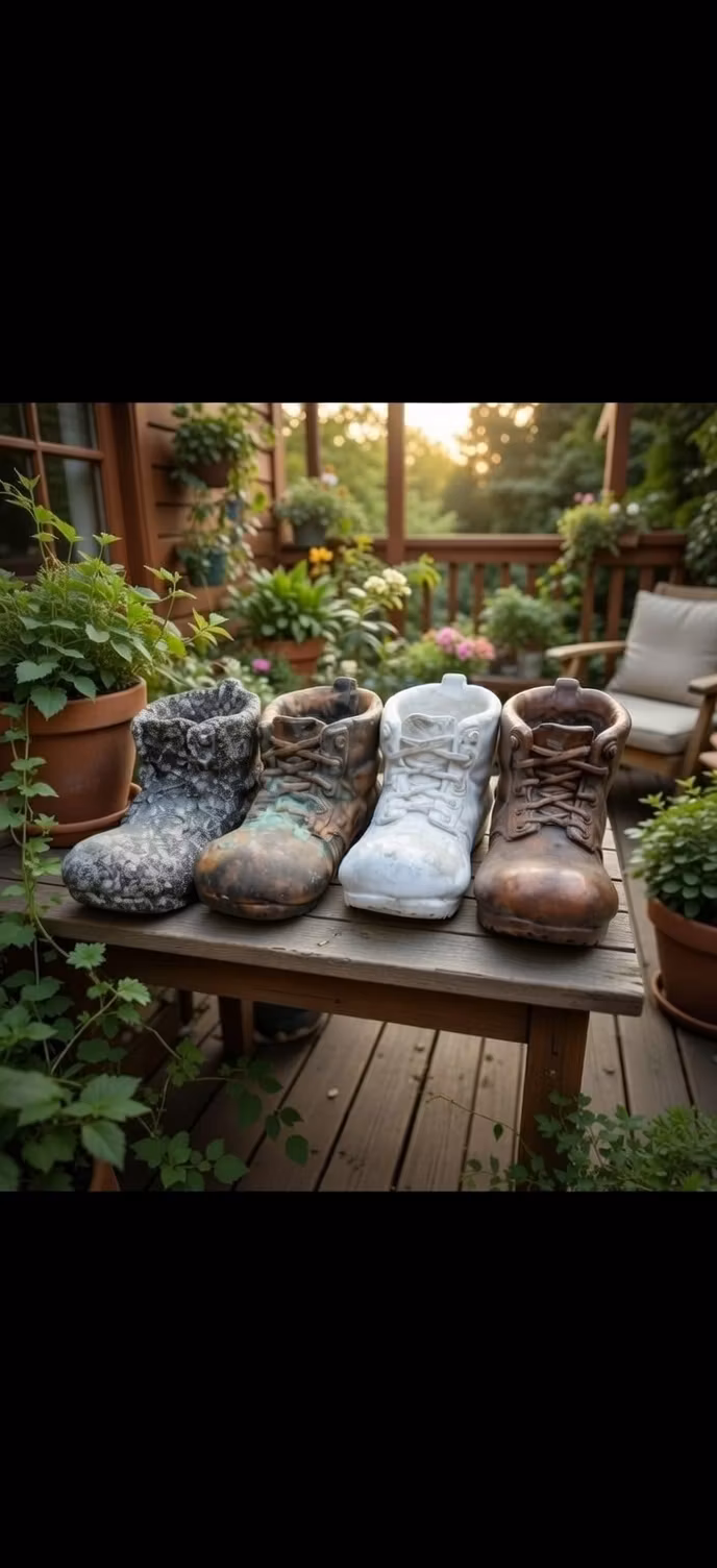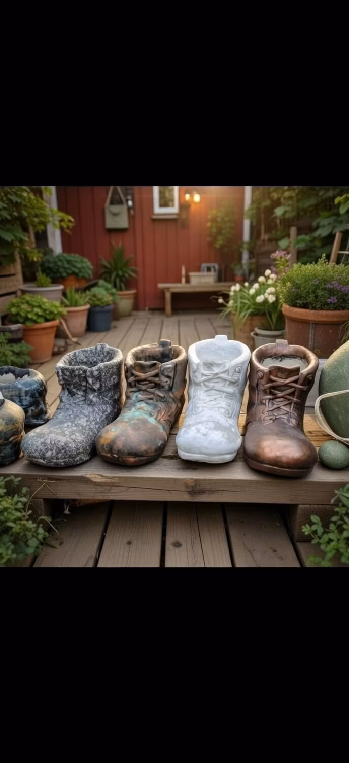 Blomkruka i form av stor känga – handgjord i betongEn lekfull och unik kruka formad som en stor känga, perfekt för växter och blomsterarrangemang.Handgjord i be