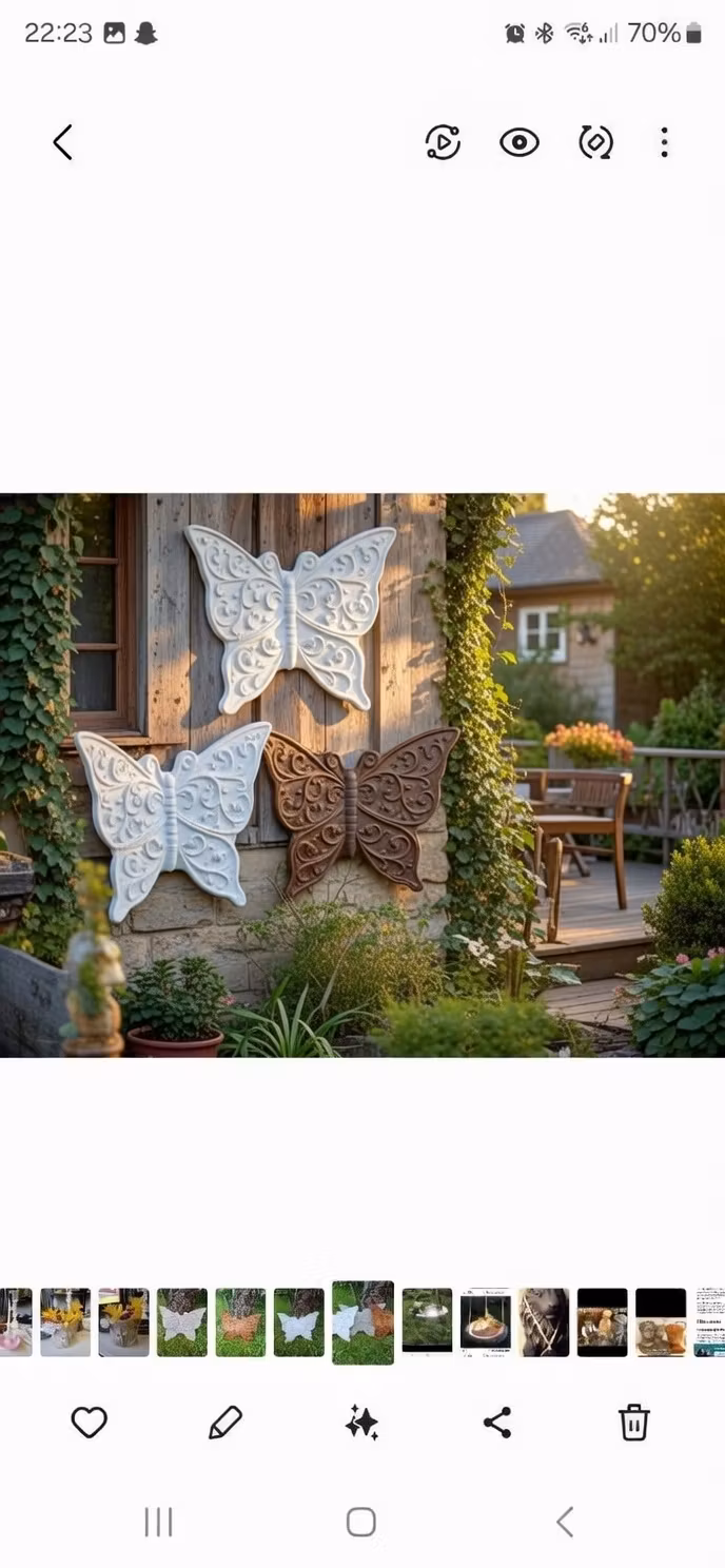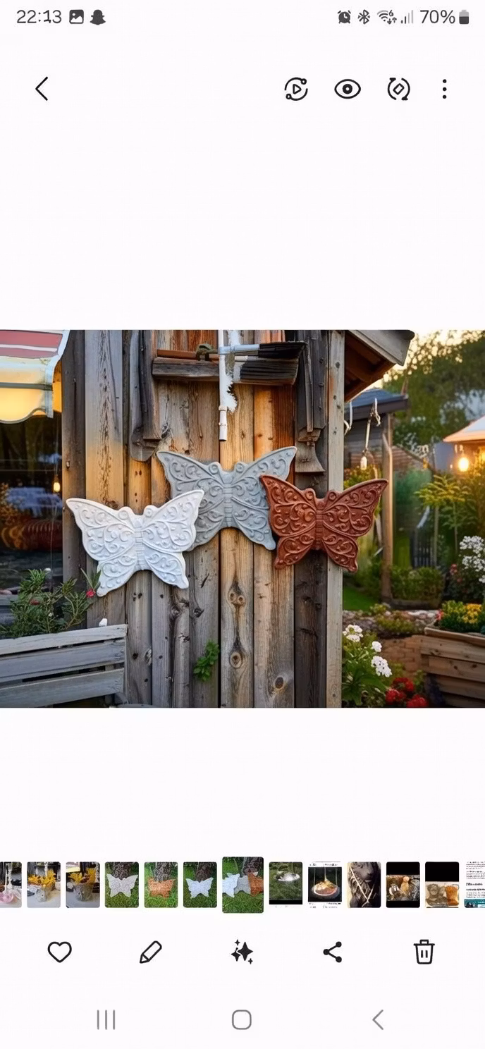 Stor betongfjäril – dekorativ för vägg eller trädEn robust och handgjord fjäril i betong med ögla för enkel upphängning.Perfekt att pryda väggar, träd eller ute