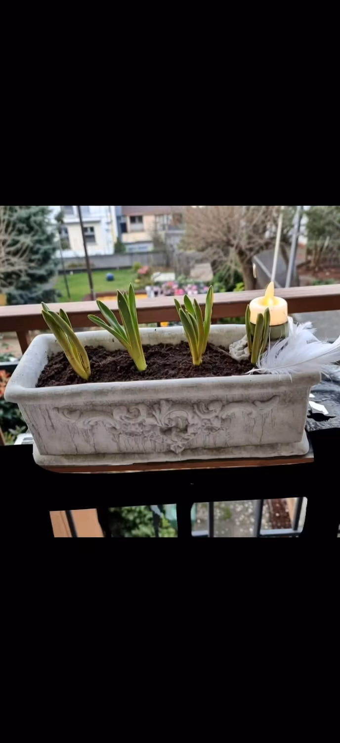 Avlång betongkruka med rankmönster