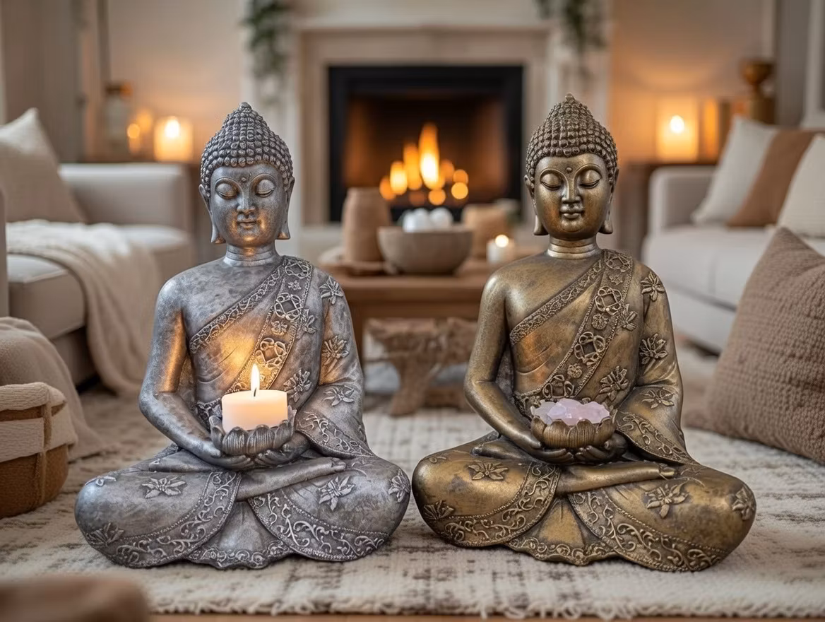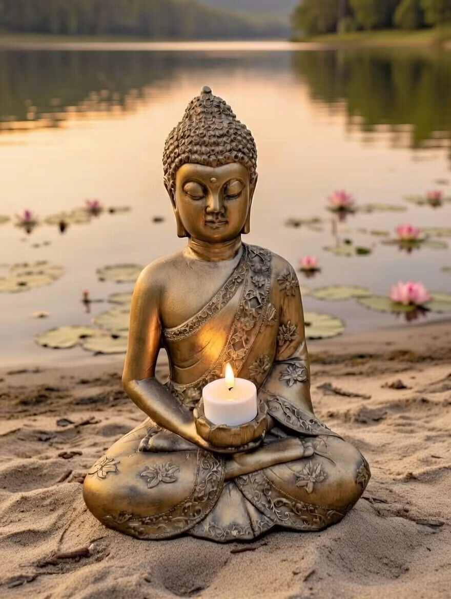 Buddha symboliserar inre frid, visdom och balans – en påminnelse om att skapa lugn i vardagen.
