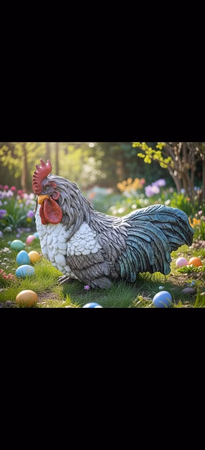 Ge din trädgård eller påskdekoration en riktig blickfångare med denna handgjutna, stora tupp i betong.